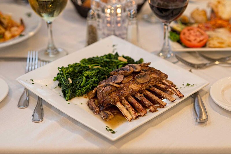 Seafood entree with lobster tail, shrimp, scallops and clams